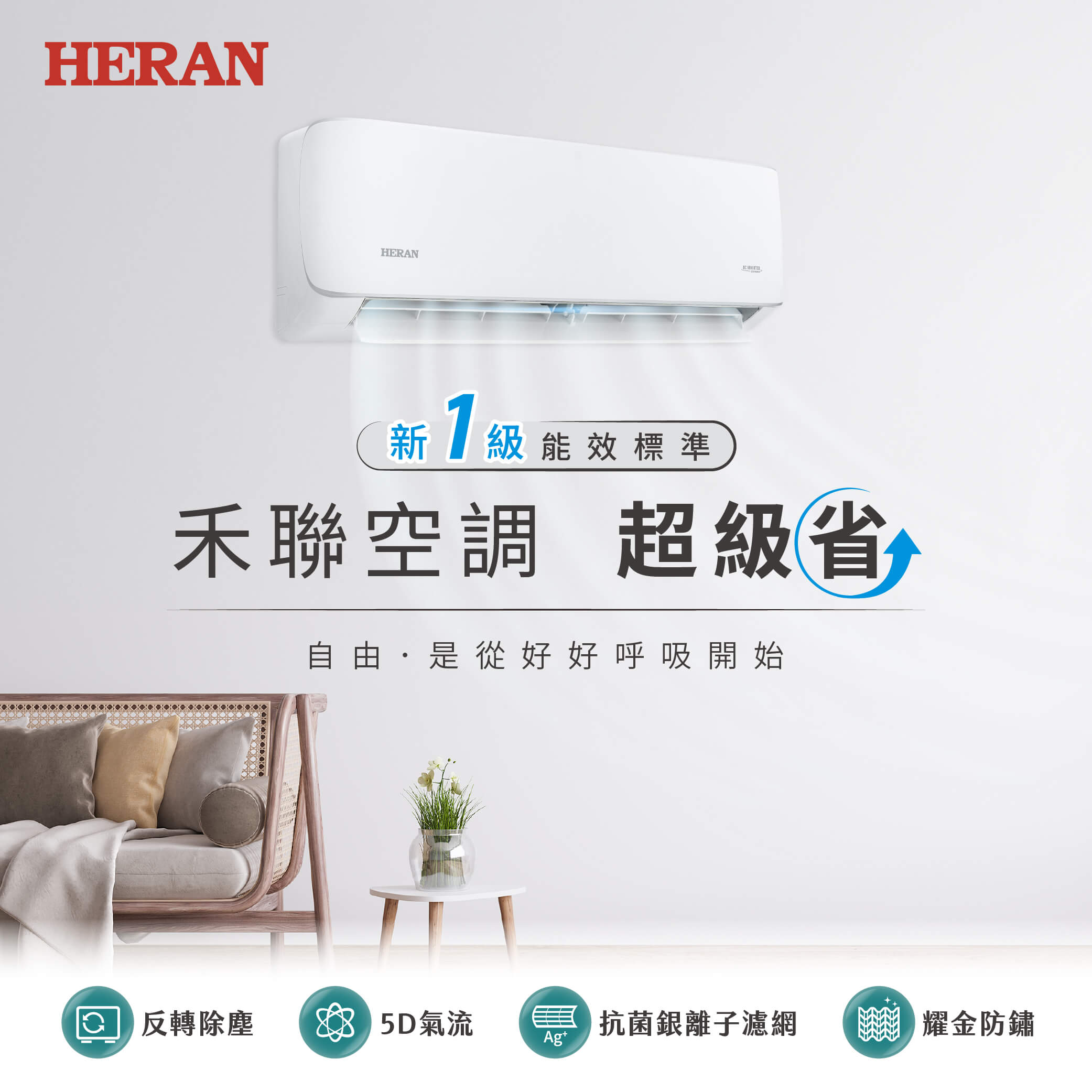 【詢問再折】HI-LA63BH/HO-LA63BH | 堅持不外包+標準安裝 | 禾聯 LA-B系列 8-11坪 一對一變頻R32冷暖分離式冷氣