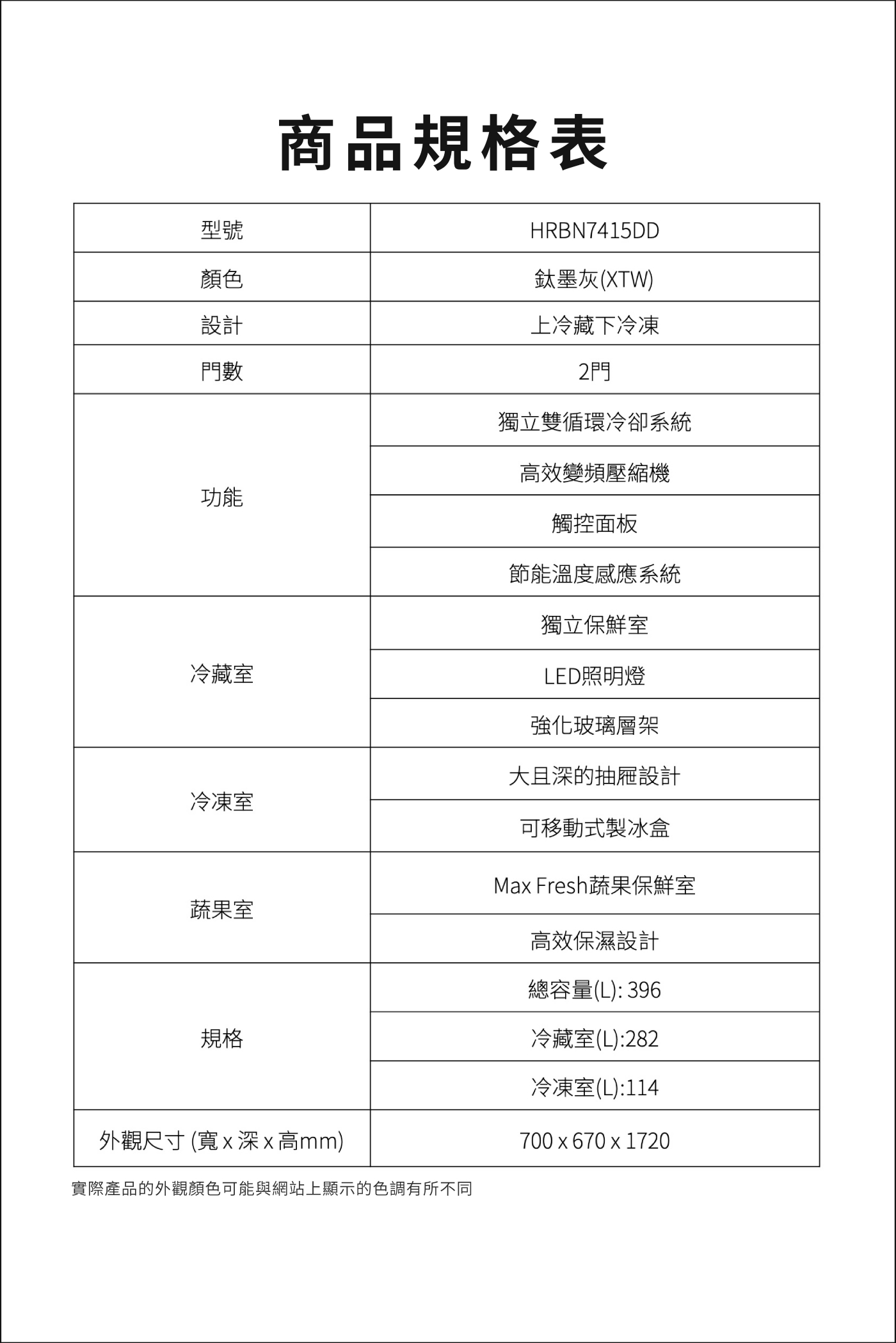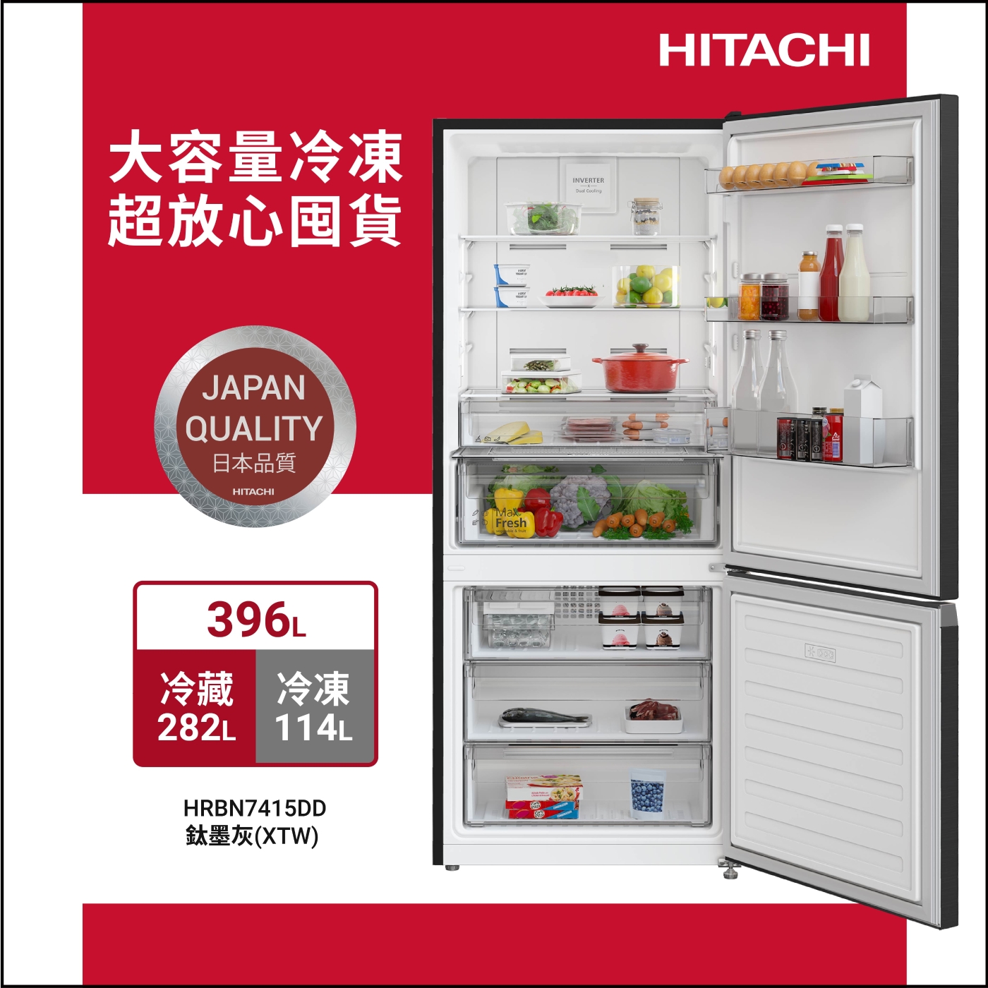 【下單再享8%回饋+詢問再折】HRBN7415DD | HITACHI 日立 396L二級能效變頻雙門右開冰箱-鈦墨灰 | 請輸入優惠代碼M0092
