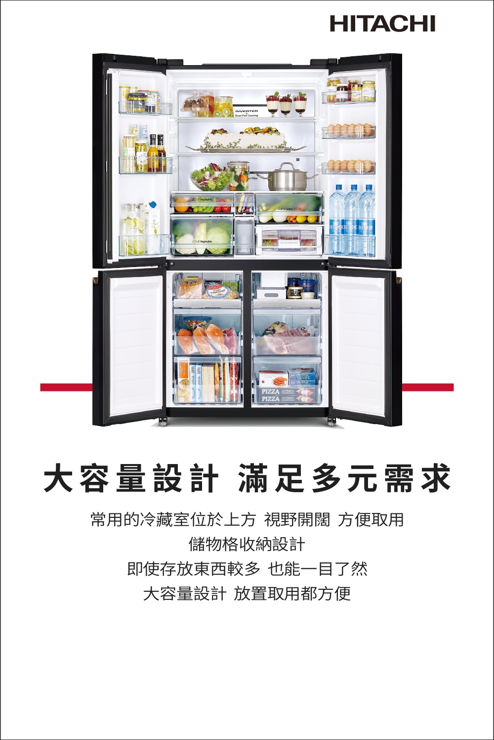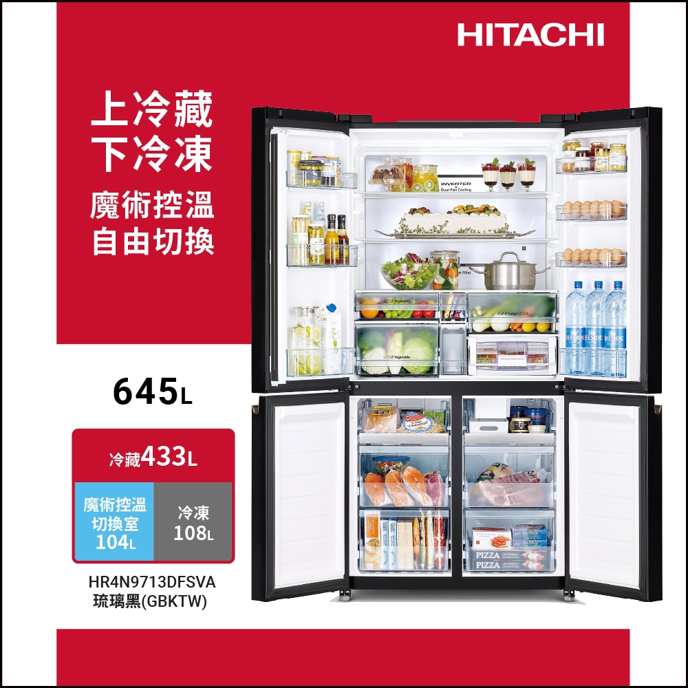 HITACHI,日立,HR4N9713DFSVA,645L,5級,變頻,四門,對開冰箱,冰箱