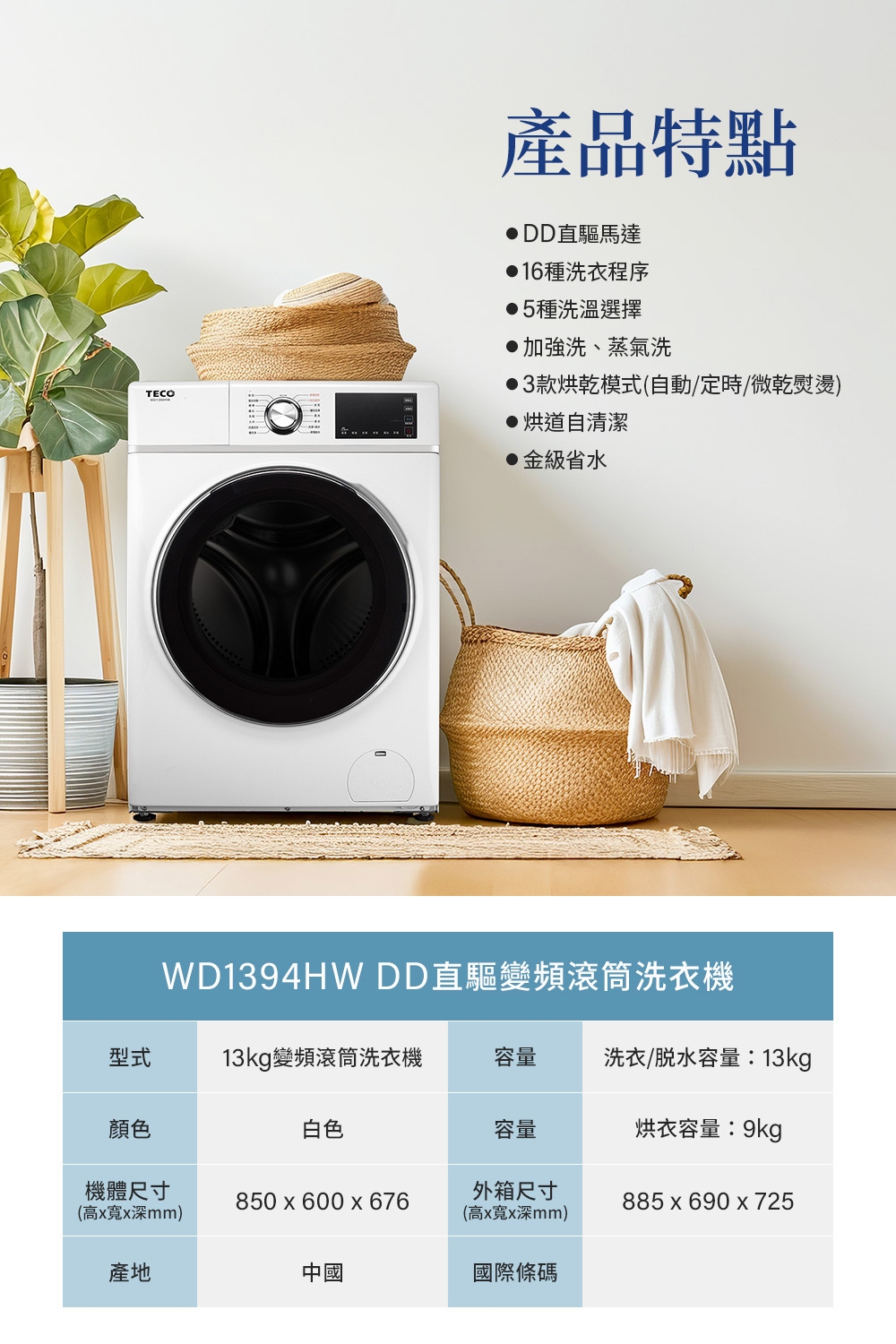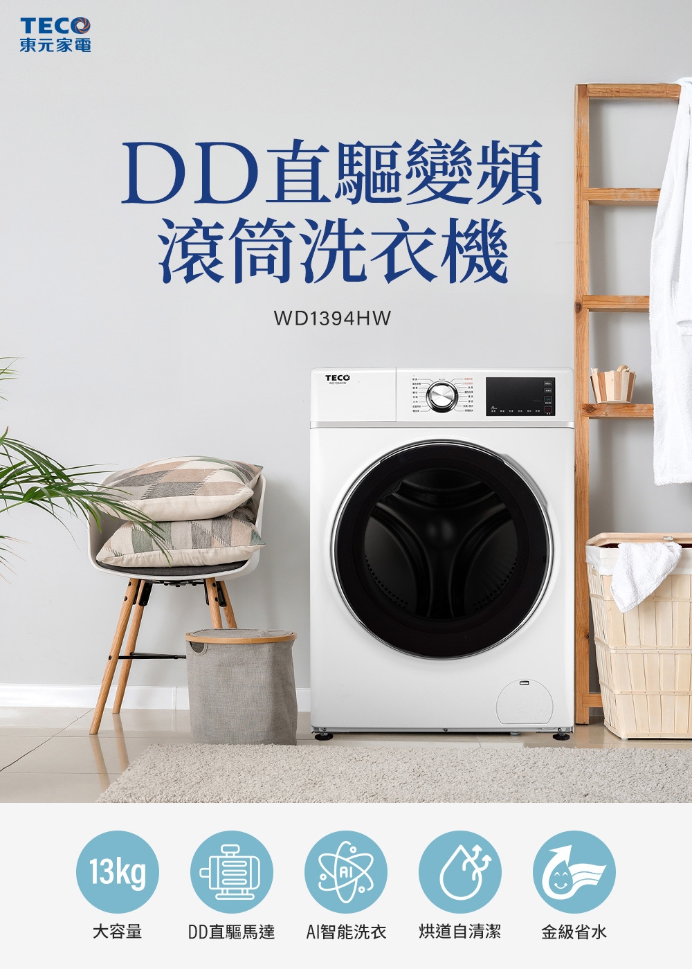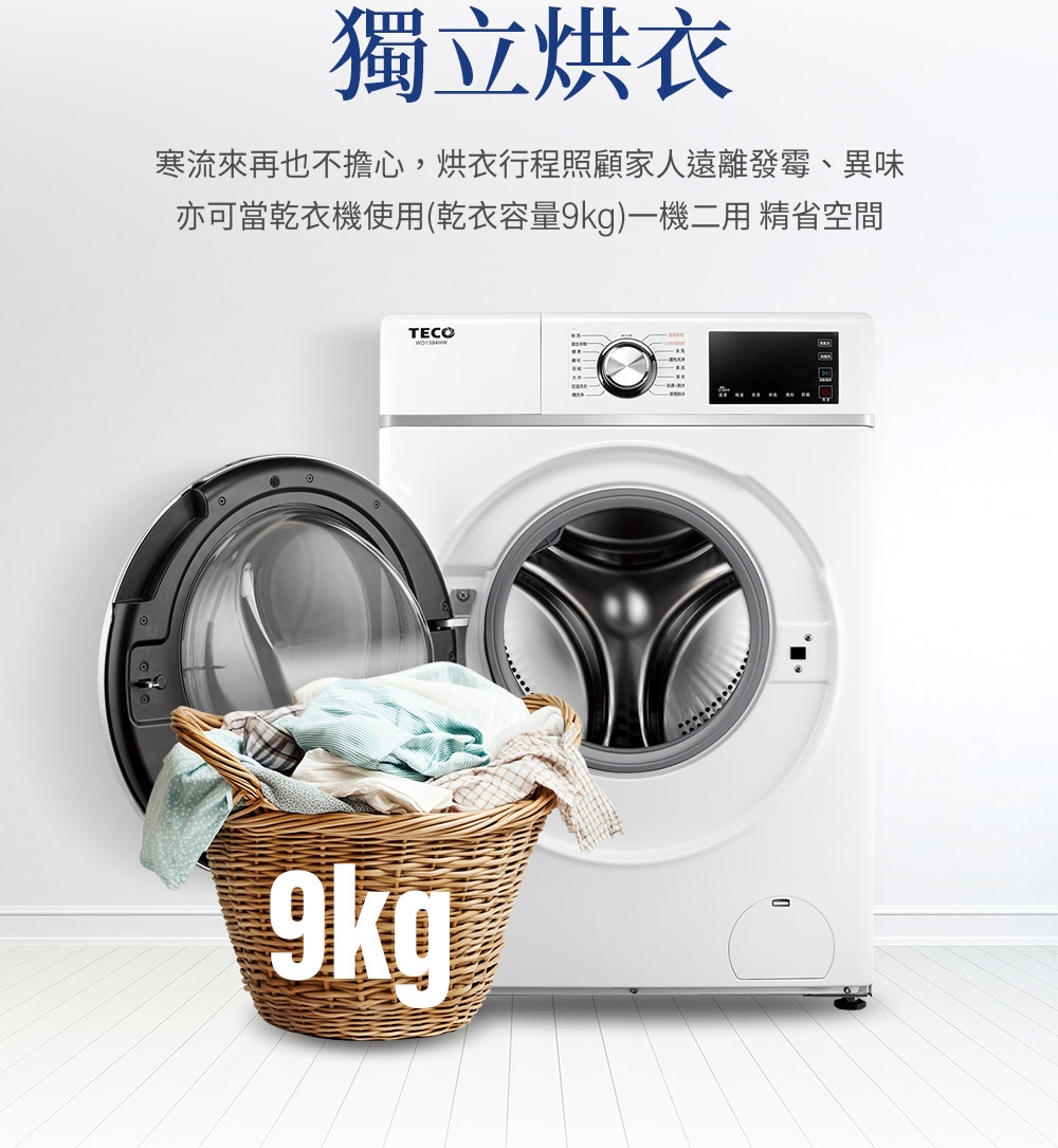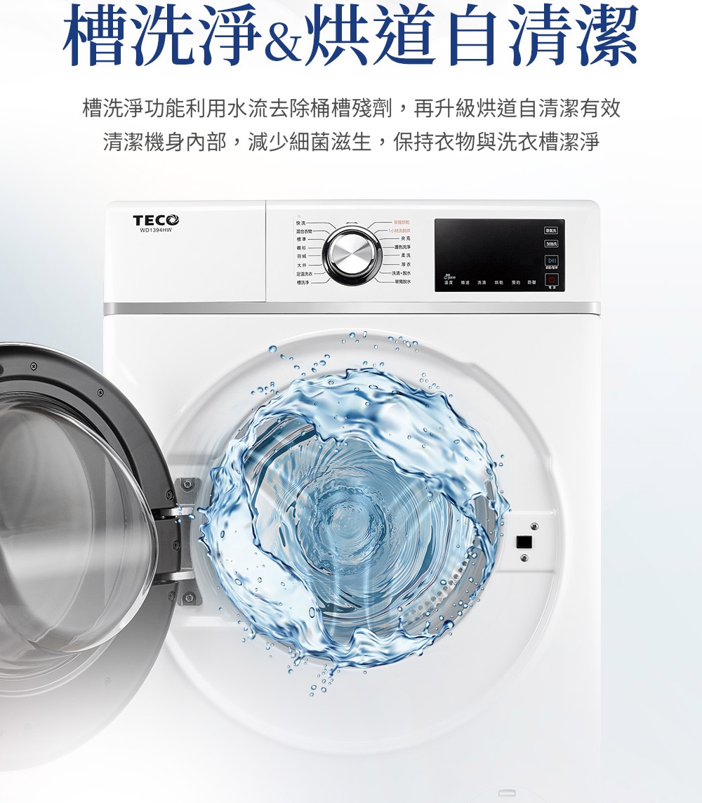 WD1394HW,TECO,東元,13公斤,蒸氣洗脫烘,變頻,滾筒,洗衣機,洗脫烘