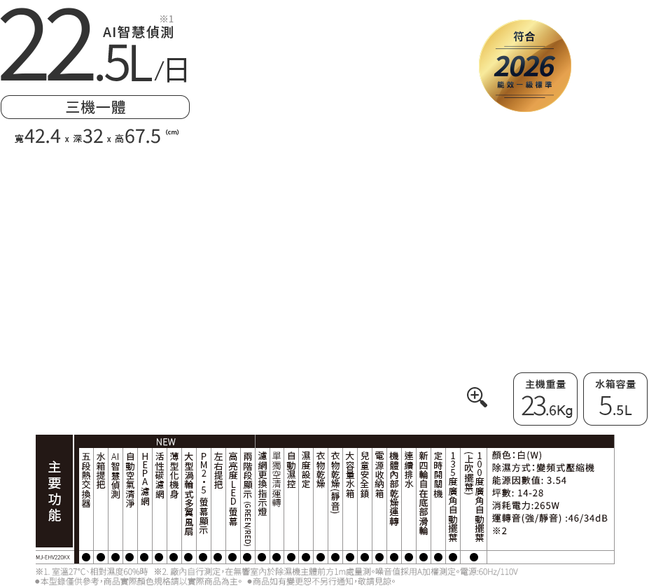 【詢問再折】MJ-EHV220KX-TW|MITSUBISHI 三菱電機 22L 日製 一級能效 變頻 空氣清淨除濕機