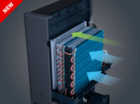 獨家研發「內部乾燥功能」在除濕機運轉結束後啟動此功能即可將熱交換器的水滴蒸發,避免黴菌滋生!
