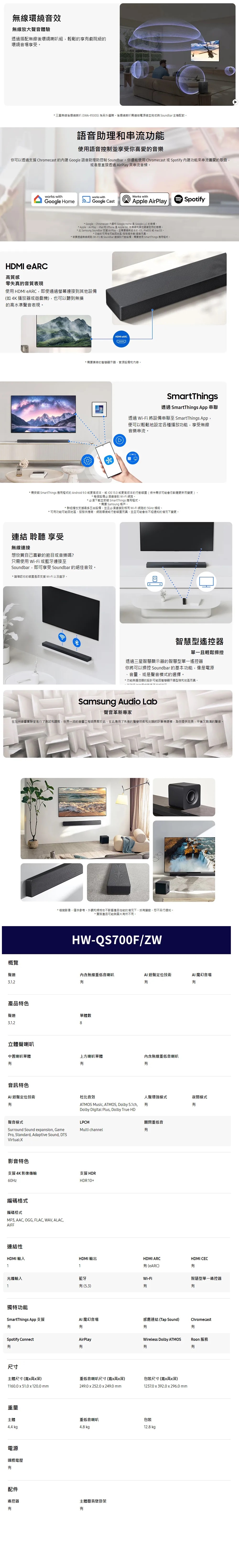 HW-QS700F/ZW,HW-QS700F,QS700F,三星,SAMSUNG,Soundbar,3.1.2ch重低音喇叭,聲霸,音響