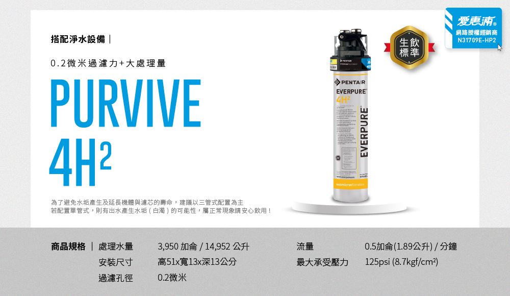 愛惠浦,雙溫,加熱,單道,淨水,H188,PurVIve,4H2,EVERPURE,PurVIve-4H2,H-188+PurVive-4H2